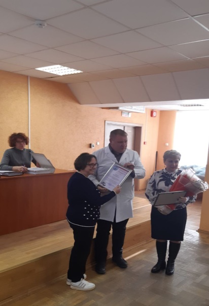 В честь сегодняшнего события Ирину Сергеевну поздравили главный врач учреждения Жинко А.Е. и председатель профкома Зырянова Т.А., вручили цветы, Почетные грамоты УЗ "ГССМП" и первичной профсоюзной организации.